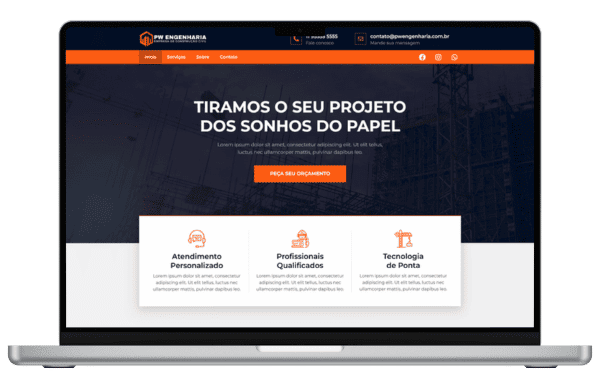 Com base no diagnóstico, desenvolvo um site moderno, responsivo e otimizado para atrair clientes e gerar conversões. Você acompanha cada etapa.